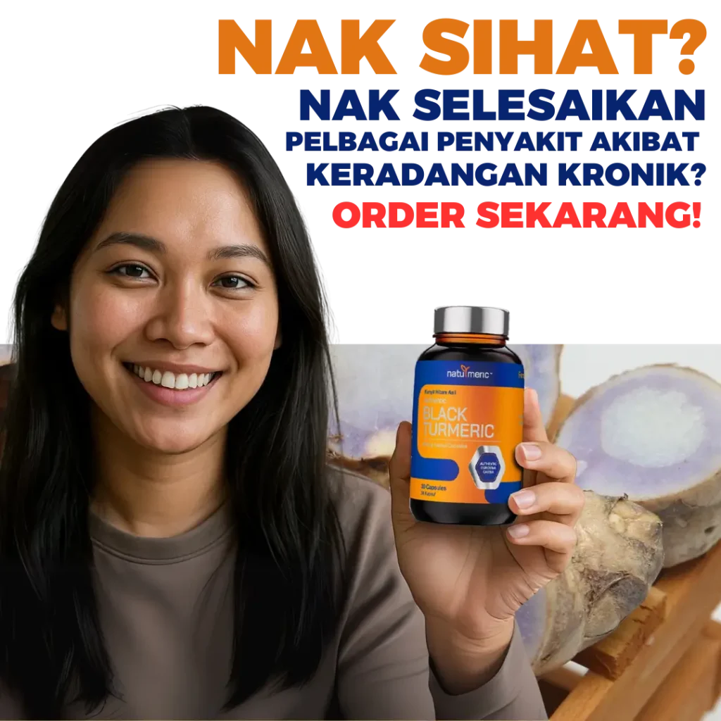 NATURMERIC adalah suplemen kesihatan berasaskan ekstrak Black Turmeric (Kunyit Hitam Asli yang telah disahkan oleh University Putra Malaysia,UPM), Herba yang jarang ditemui dan bernilai terlalu tinggi yang kaya dengan curcuminoid dan antioksidan berfungsi menentang keradangan kronik — iaitu akar utama kepada pelbagai penyakit moden — serta menyokong pemulihan tubuh secara menyeluruh tanpa bergantung pada ubat sintetik.
