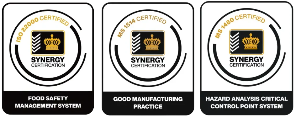 Sijil GMP (Good Manufacturing Practice) untuk jaminan kualiti.
