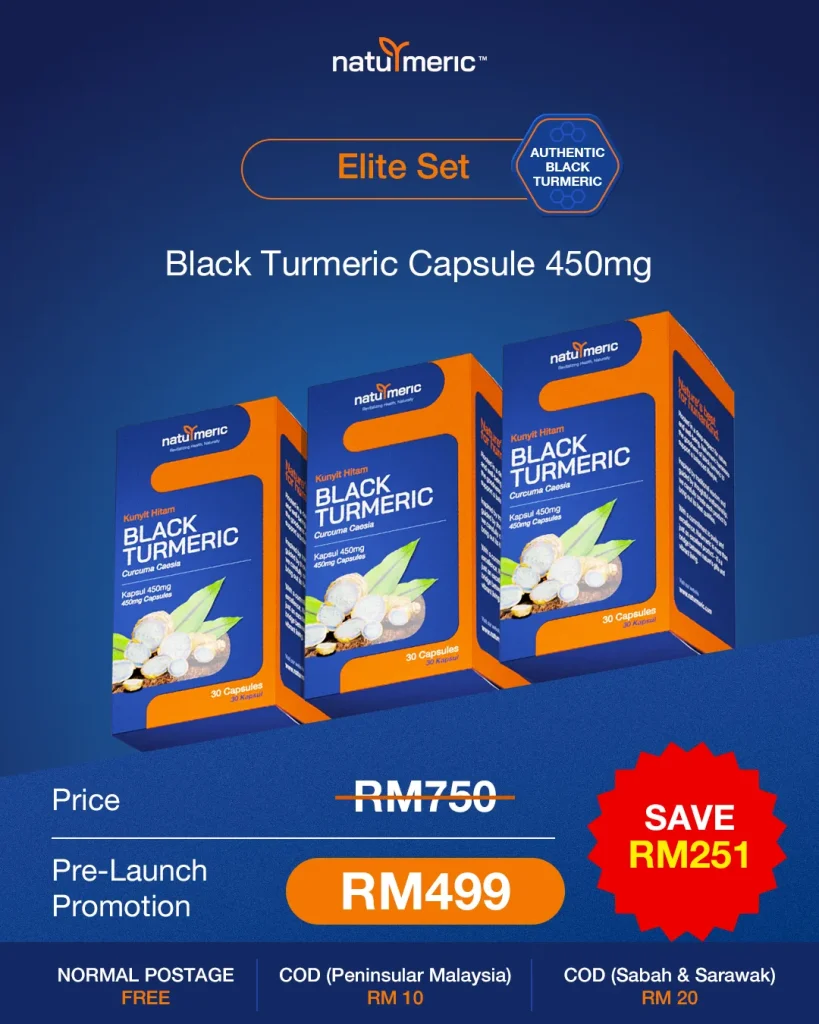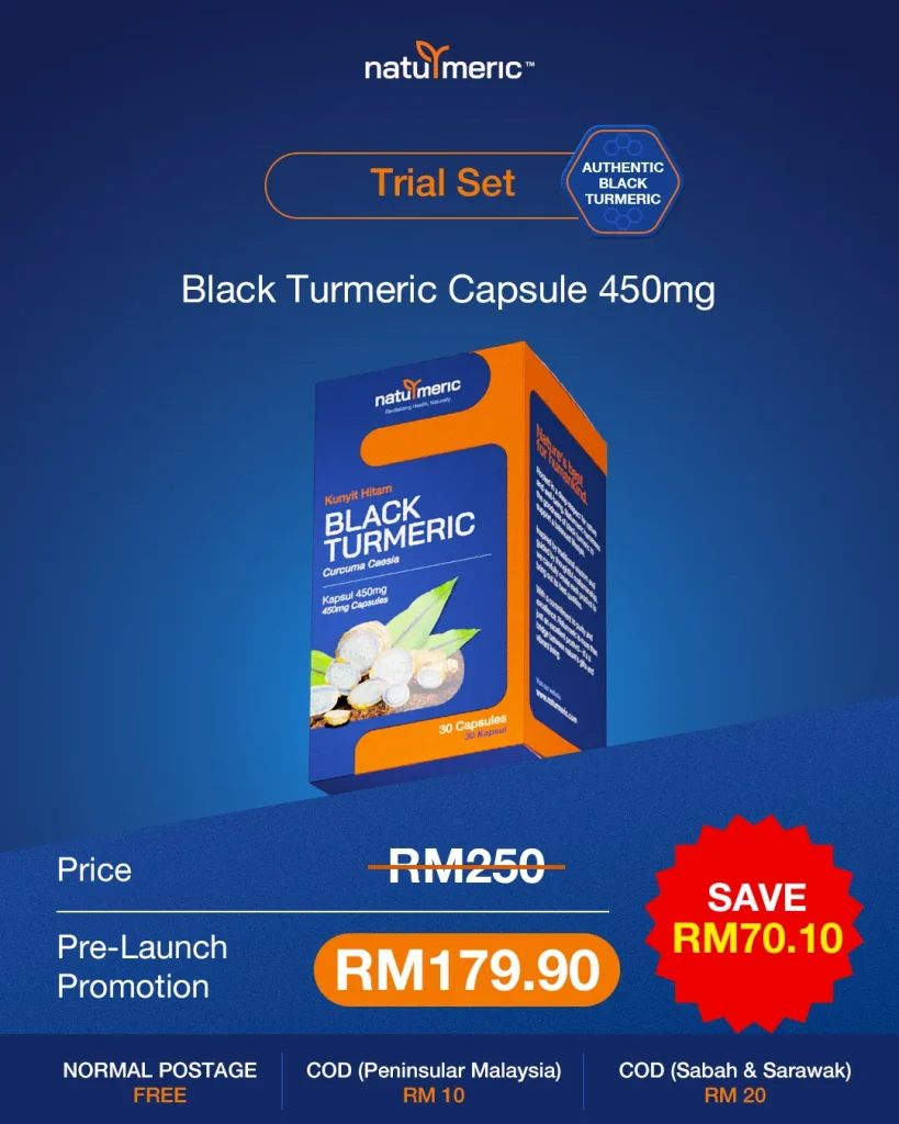 NATURMERIC adalah suplemen kesihatan berasaskan ekstrak Black Turmeric (Kunyit Hitam Asli yang telah disahkan oleh University Putra Malaysia,UPM), Herba yang jarang ditemui dan bernilai terlalu tinggi yang kaya dengan curcuminoid dan antioksidan berfungsi menentang keradangan kronik — iaitu akar utama kepada pelbagai penyakit moden — serta menyokong pemulihan tubuh secara menyeluruh tanpa bergantung pada ubat sintetik.