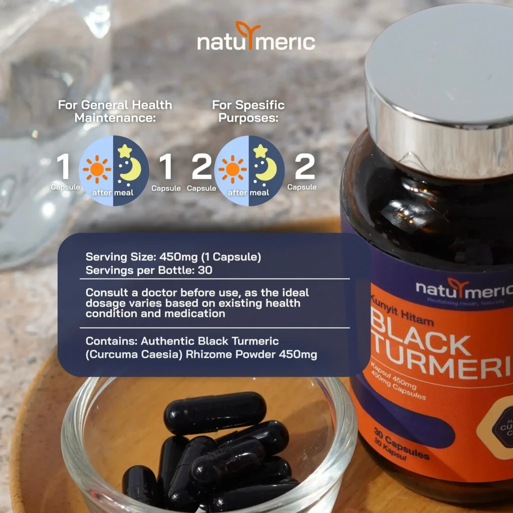 Kunyit Hitam dalam NATURMERIC mengandungi sehingga 10 kali ganda lebih curcuminoid berbanding kunyit biasa — menjadikannya jauh lebih berkesan dalam melawan keradangan kronik, menstabilkan sistem imun, serta membantu menurunkan kesakitan dan paras asid urik secara semulajadi.